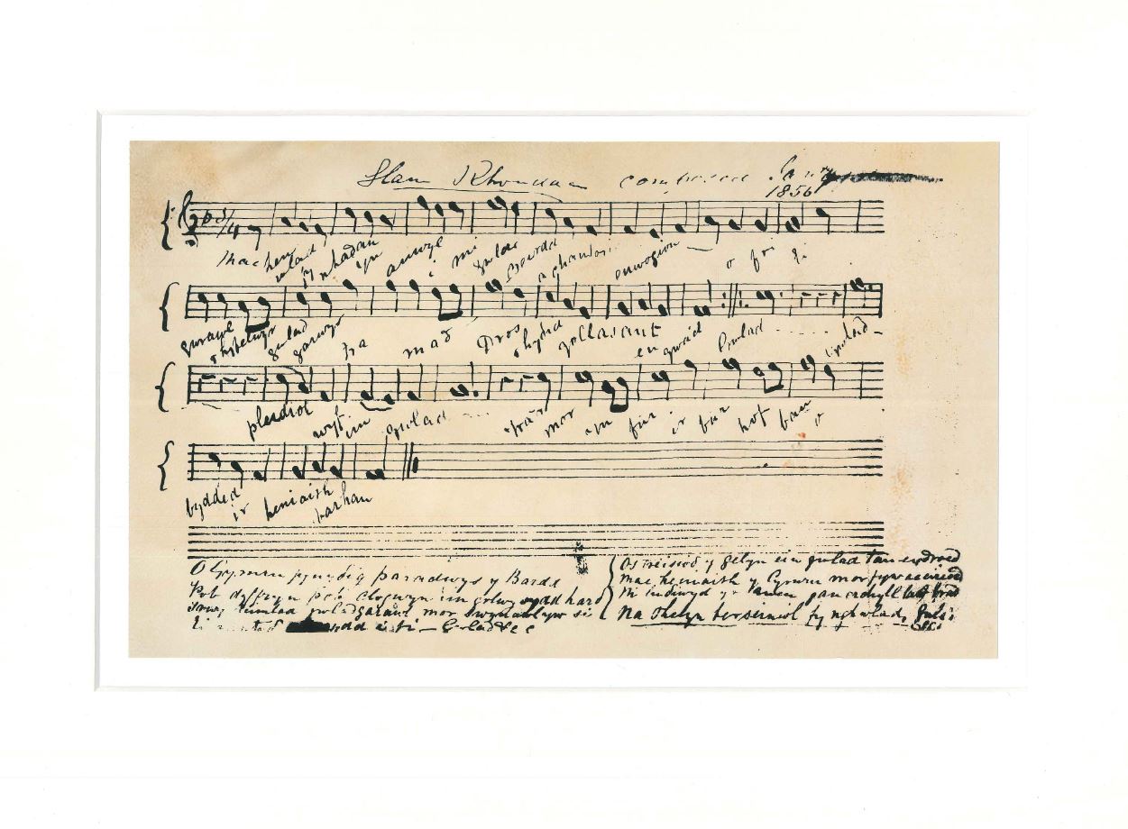 'Llawysgrif yr Anthem Genedlaethol, 1856' - Print mewn mownt