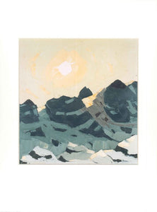 Mountain Landscape with high sun [rhwng 1970 a 1980] - Sir Kyffin Williams Print mewn mownt
