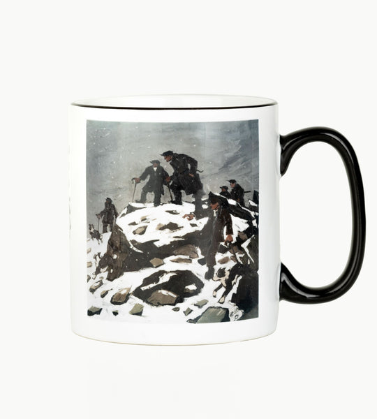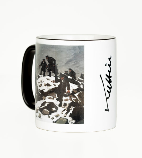 Mae'r mwg hwn wedi printio efo llun o'r casgliad ynghyd â'r logo Llyfrgell Genedlaethol Cymru a llofnod Syr Kyffin Williams. Mae'r eitem hon yn gyfyngedig i'r Llyfrgell Genedlaethol Cymru. Mae'r mwg hwn yn ddiogel i olchi mewn peiriant golchi llestri ac i roi yn y ficrodon.