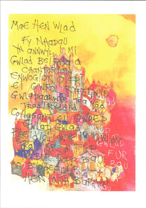 Cerdyn cyfarch unigol gydag amlen gan Diana Williams, gyda'i chynllun ‘Yr Anthem Gymreig’.